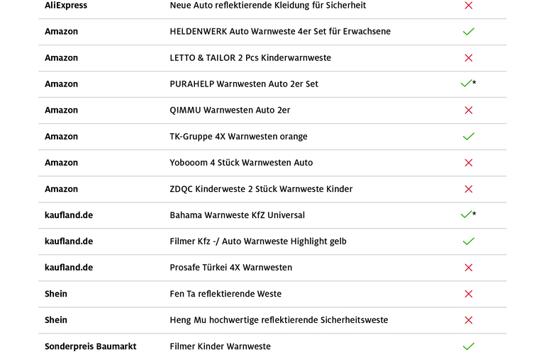 ADAC Warnwesten-Test 2025 - Viele Online-Versager